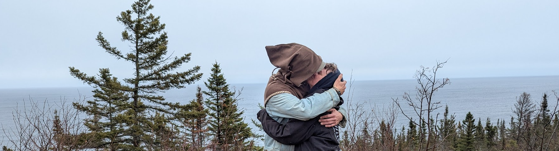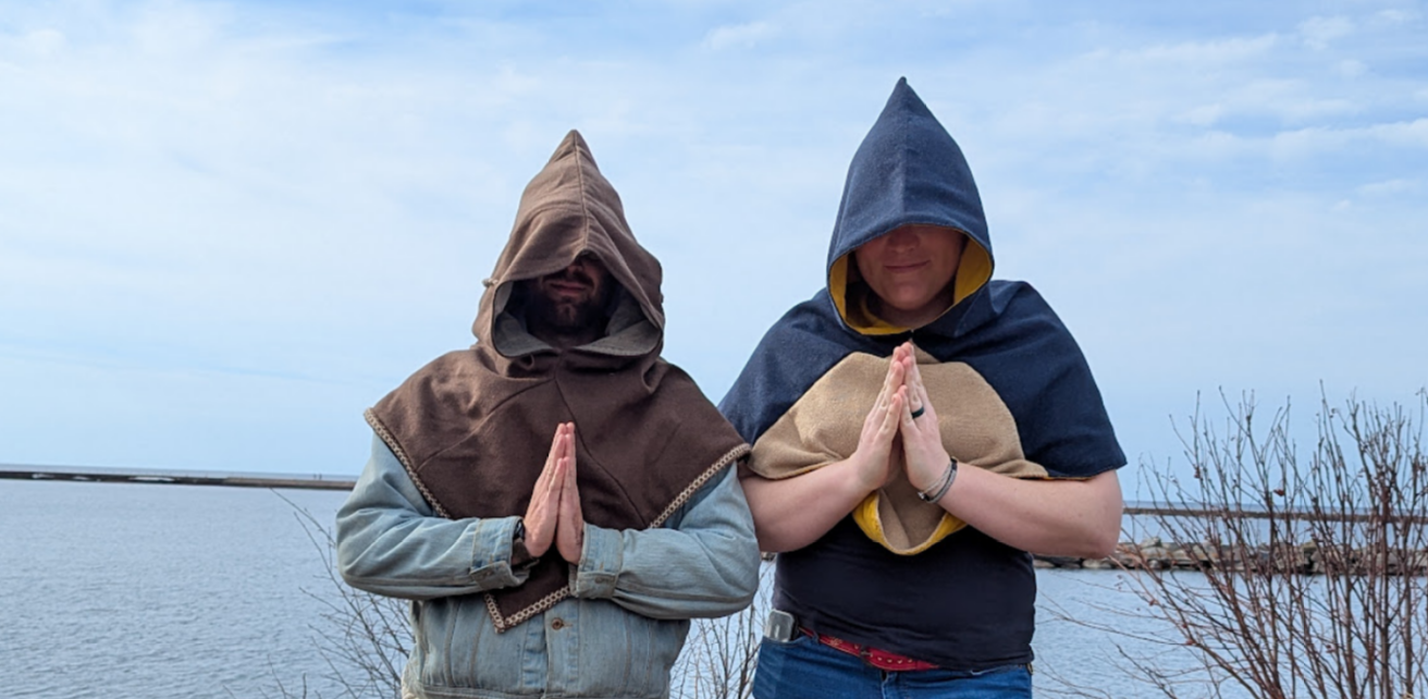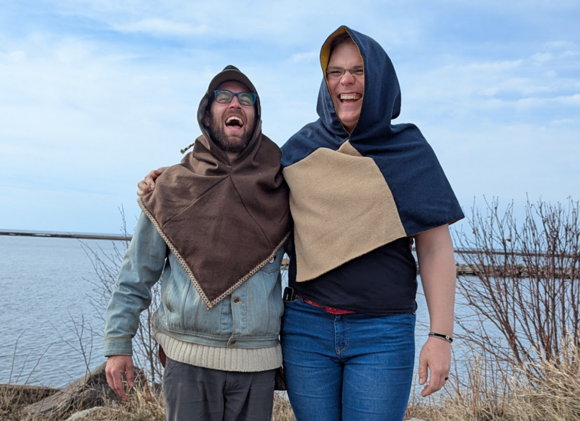 I've been making a lot of hoods lately. The hood on the left, the brown one I'm wearing, was a Christmas gift from a good friend. They bought it from Grimfrost and it immediately became an essential part of my wardrobe. It is called the Hood of Skjoldehamn, as the design is a recreation of a hood worn by a 1,000-year-old body found in a marsh in Skjoldehamn, Norway.