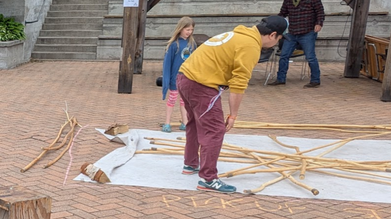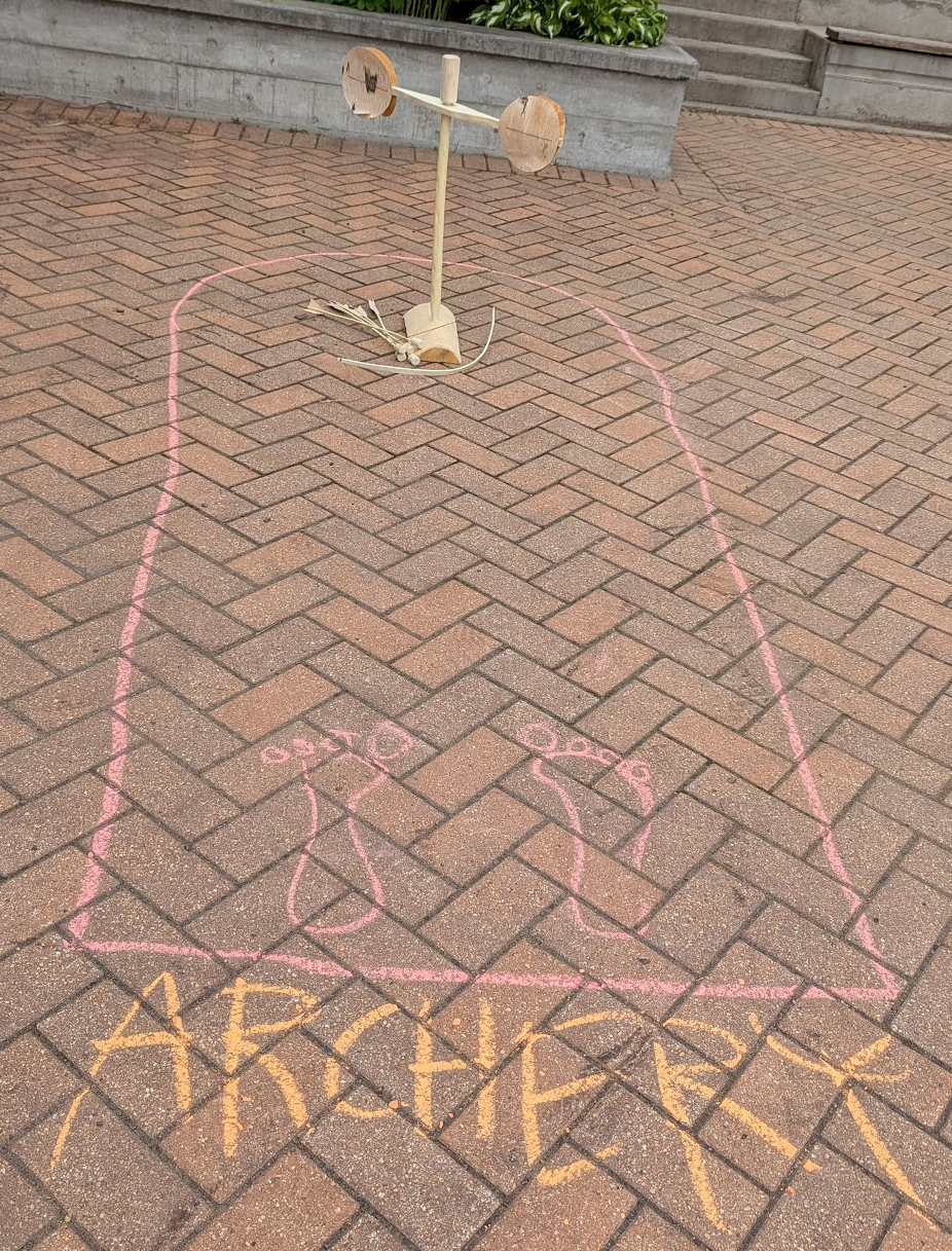 This archery kit was a real experiment and real win! The target has two big birch bark circles, and it spins when hit. I only gave out a few arrows at a time, so kids would have to collect their arrows after shooting them. Very very very many kids clearly could have shot arrows for hours and hours, and could hardly be torn away by their accompanying adult.