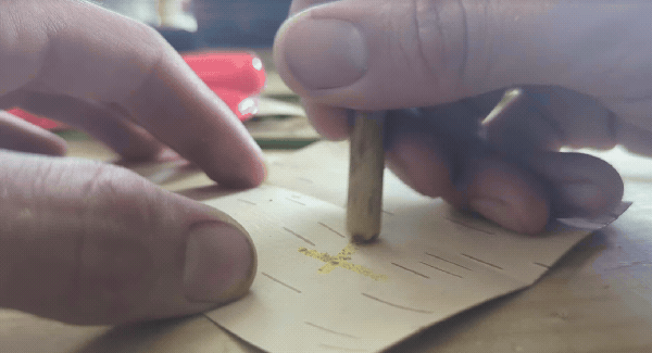 First experiment: beeswax and turmeric. Goal: a yellow crayon.