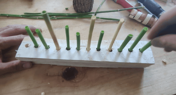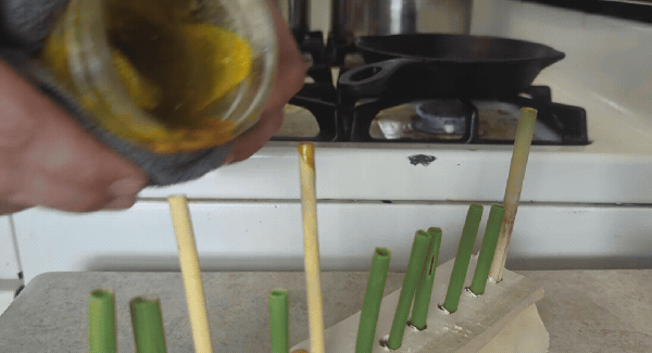 Each of the stalks can be cut apart, or even pulled apart, and in doing so you may find that they are totally hollow inside. Thus: the perfect housing for a crayon.
