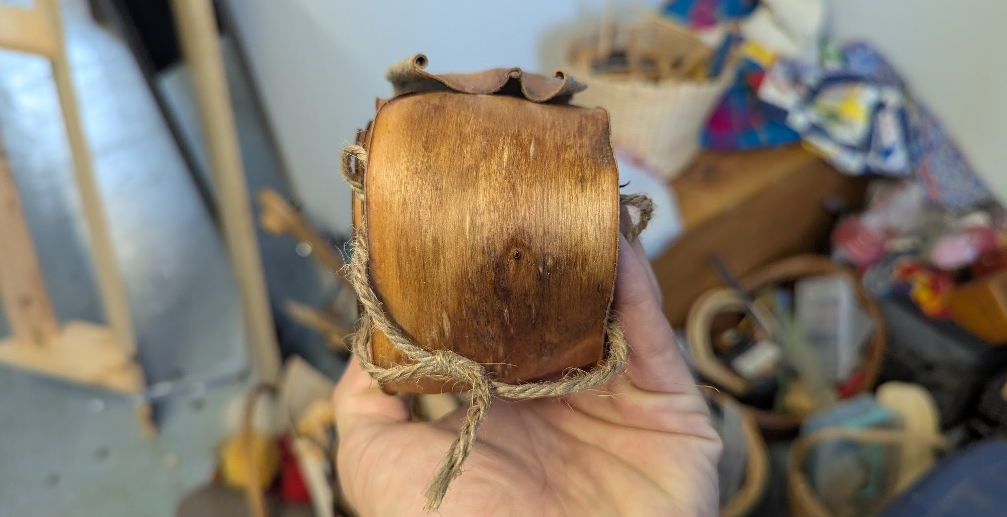 I harvested lots and lots of willow bark this spring, and coiled them up into these handy packages.