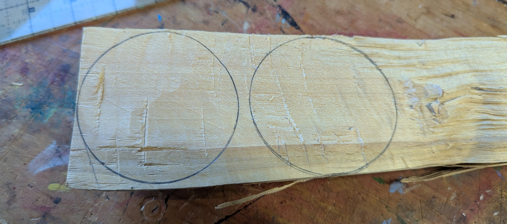 The wooden discs I'm using here are from a birch tree that a friend's friend was cutting from their front lawn. The tree was absolutely massive, and it was just the right time of year to harvest the bark as well.