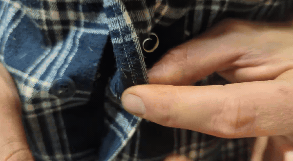 The trick with this puzzle is that the needle is stuck inside a buttonhole. It seems simple to detach, but it isn't!