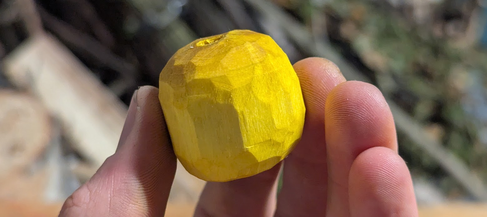 I found that the turmeric ink was not suitable for writing, as it spread out very quickly and was not viscous enough to hold the shape of letters. However, it seems perfect for dyeing wood a bright and brilliant gold!