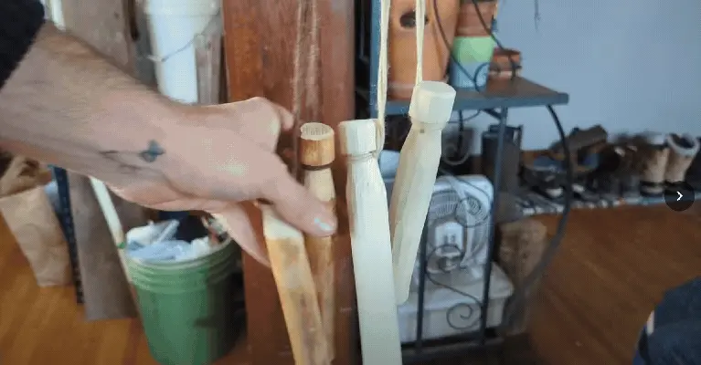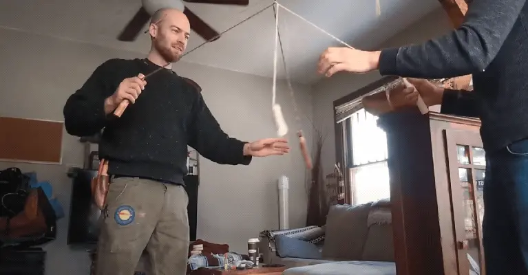 This will be the top stick, which hangs from a handy rafter to anchor the four jugglebraid cords.