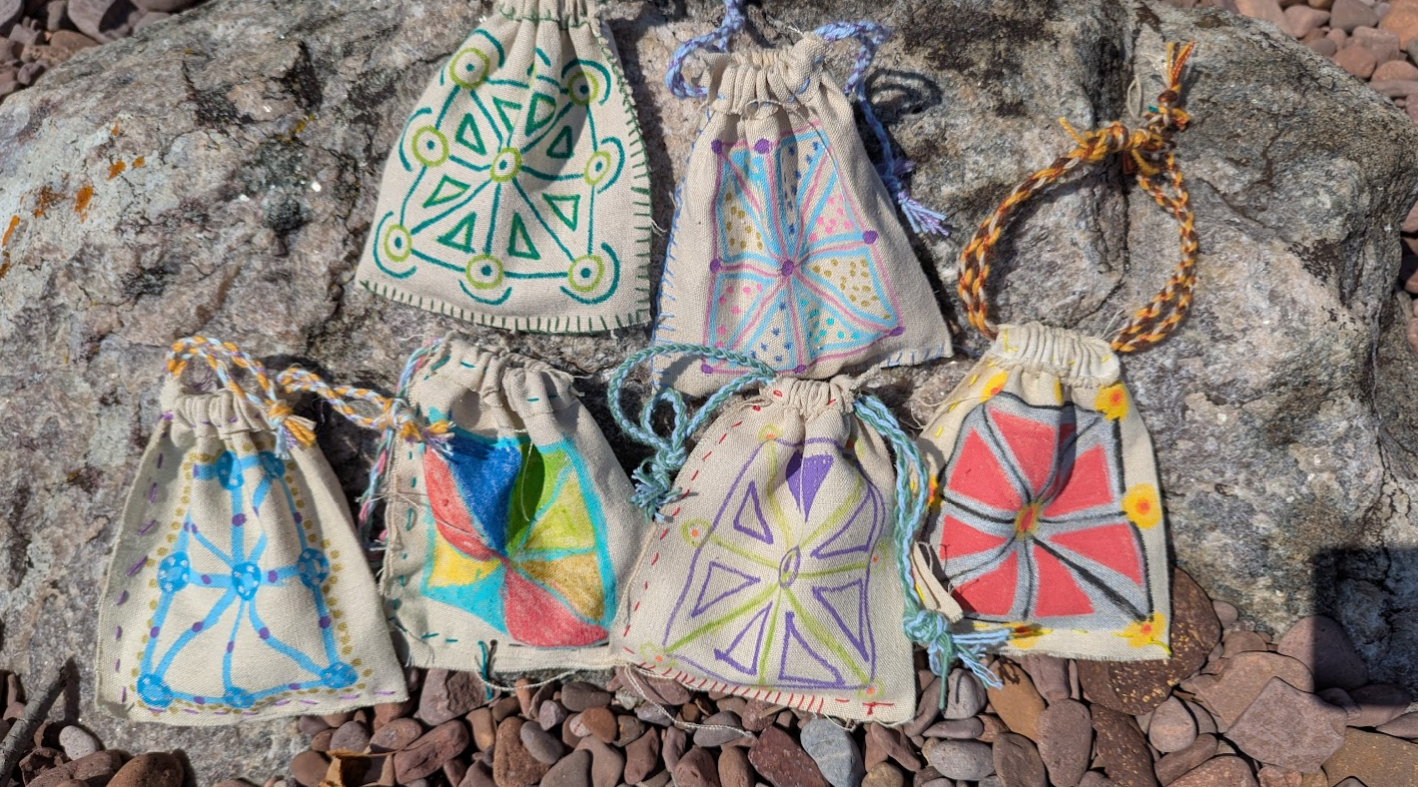 Jugglebraiding creates a strong and beautiful cord that is handy for all kinds of things - including drawstrings for bags, as you can see!