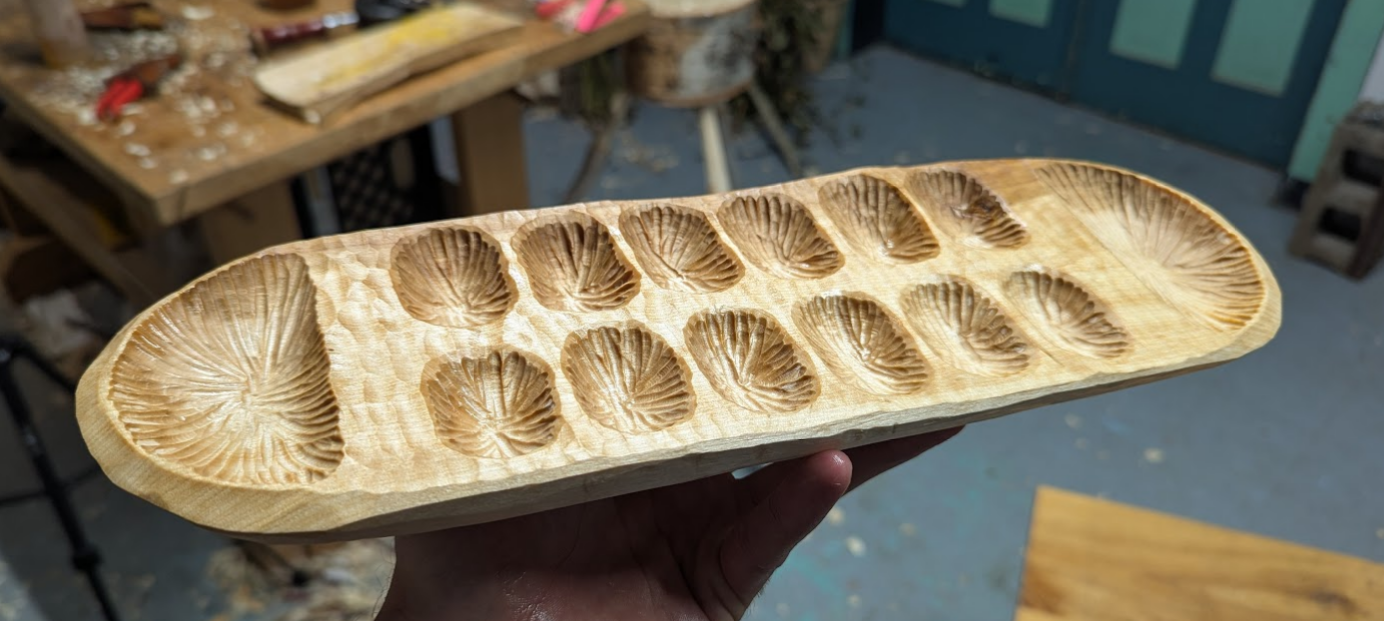 As a bonus for today, the Oware/Mancala board from 11 days ago is finally dry and ready for oil!