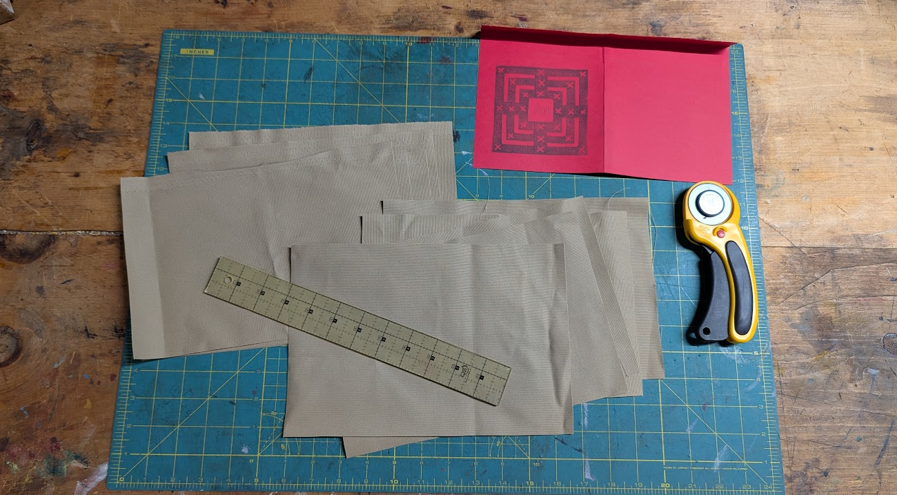 Tonight, I'm preparing the game boards. The game boards will also be small bags that will hold the game pieces!
