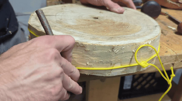 This cookie unfortunately started splitting, so I'm wrapping it up as tight as possible with some cord in order to keep it from splitting more. I don't know if it will work, but we will try our best. The Fidchell game board resembles a cracking log, so perhaps the crack will fit in with the aesthetic of the board in some way.