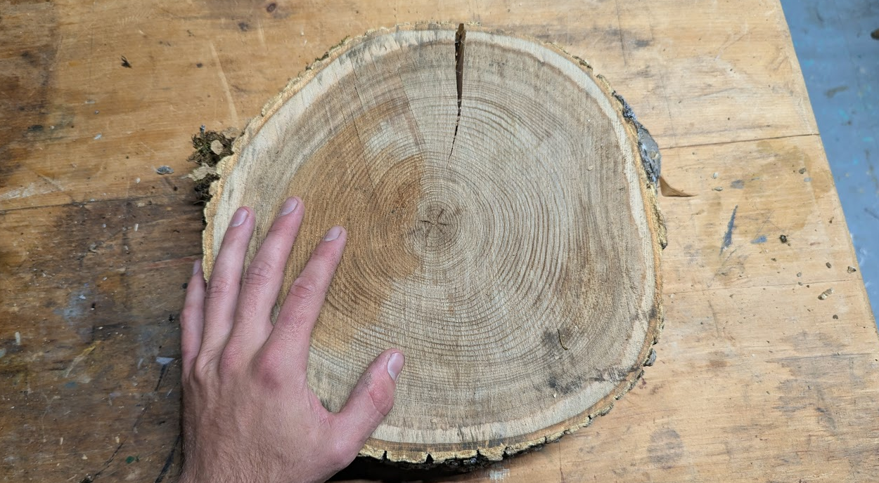 My friend Mia is finishing her Craft Education Internship here at North House Folk School. Her capstone project is simple and brilliant: she has felled an old Ash tree, and has given pieces of the tree out to craftspeople in the community. Everyone is making something out of their piece, and all will be displayed in an exhibition together.