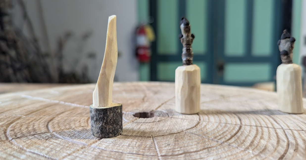 Maybe I can use the twig-tips to decorate the pieces? They sort of look like Chess bishops to me!