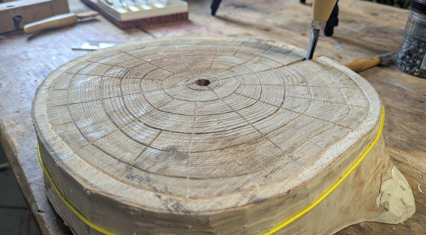 The first thing I know I want to do is to create the game board by following the growth rings of the tree.